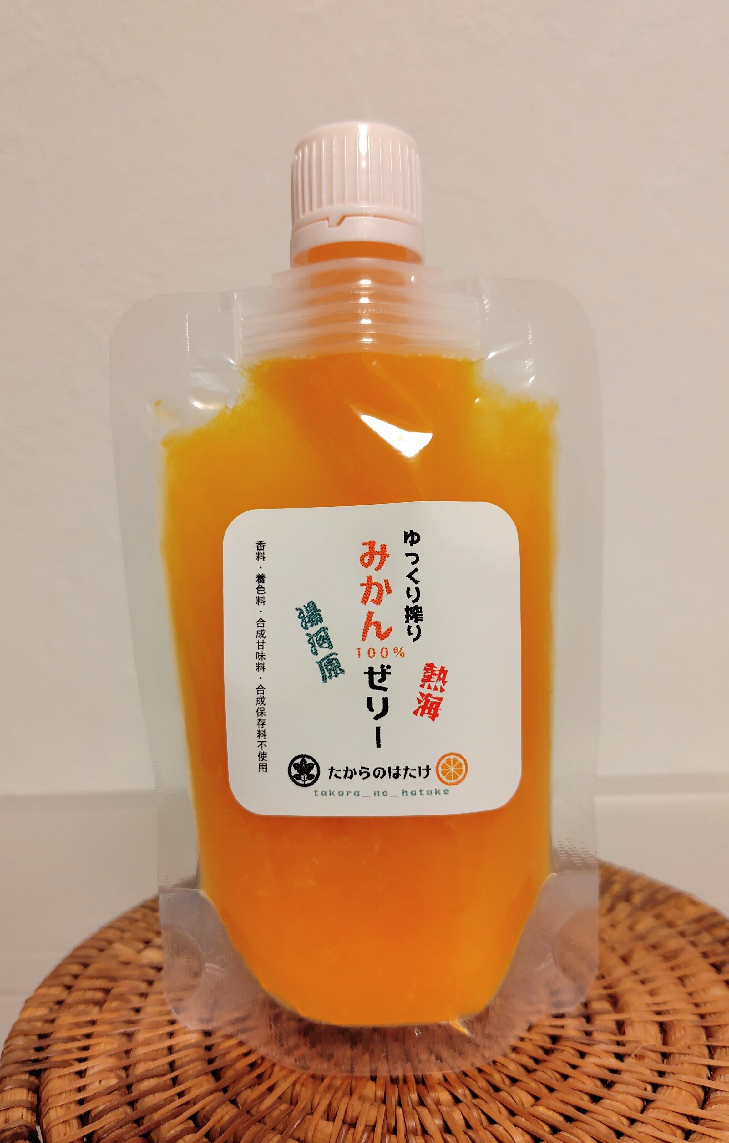 熱海・湯河原地域で育ったみかん、湘南ゴールド、不知火(デコポン)を手剥きし、スロージューサーで搾った果実そのものの味の濃厚な果汁に、水一滴加えずに作った贅沢な味わいのゼリーです。